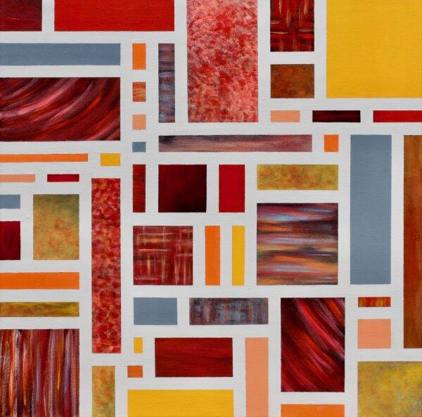 Beschreibung: Ein Bild wird in viele kleine Quadrate, Rechtecke oder Formen zerlegt und neu arrangiert.