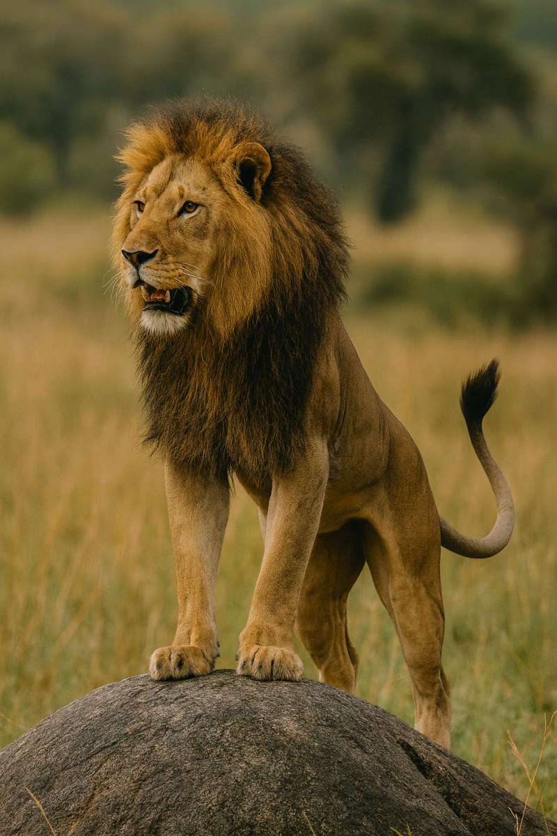 Ein Löwen-Logo, das mit wenigen Formen sofort erkennbar ist – vielleicht nur ein Kreis (Mähne) und ein Dreieck (Schnauze), kombiniert zu einem eindeutigen Zeichen.