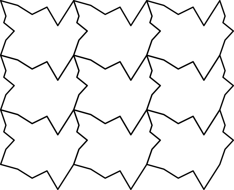 Versuche mit jeder Form eine Fläche lückenlos zu füllen (parkettieren). Beginne jeweils mit 6-8 gleichen Formen und lege sie aneinander.