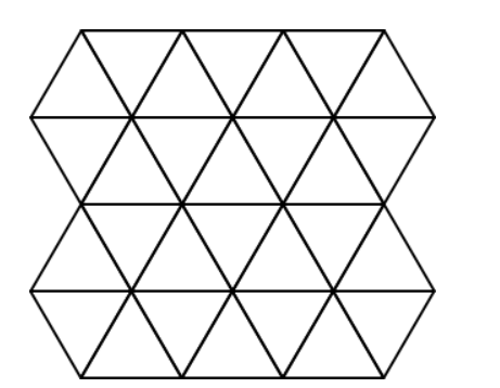 - An einem Punkt treffen 6 Dreiecke zusammen (6 × 60° = 360°)