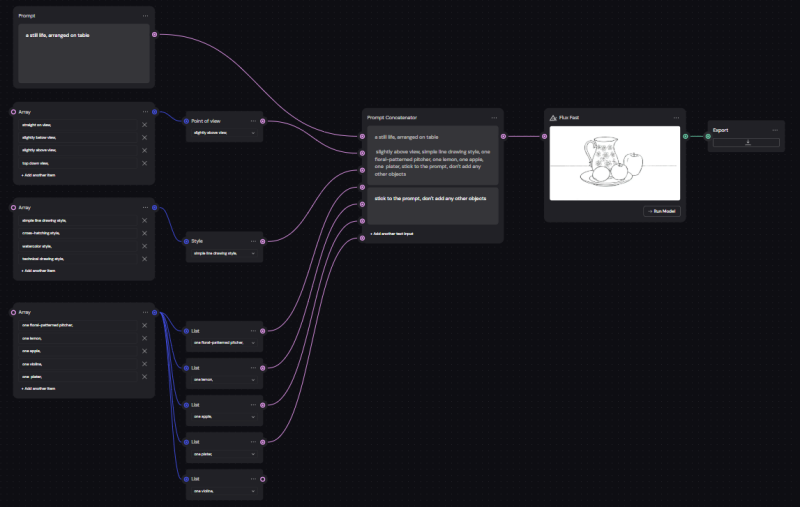 Ich habe einen Ablauf in Weavy AI generiert, bei dem ich einzelne Bildelemente auswählen kann und diese automatisch anordnen lassen kann.