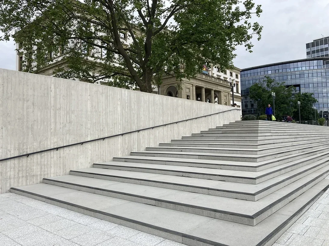 Setze eine Foto einer monumentalen Treppe in Parallelperspektive um.
