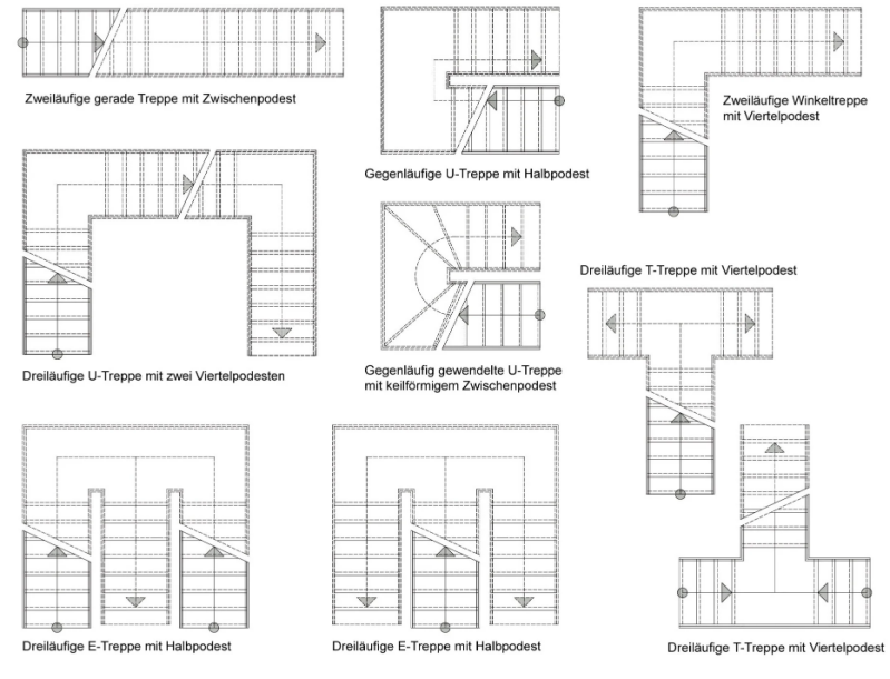 - Podest: nach max. 18 Treppen muss eine Podestfläche den Treppenlauf unterbrechen