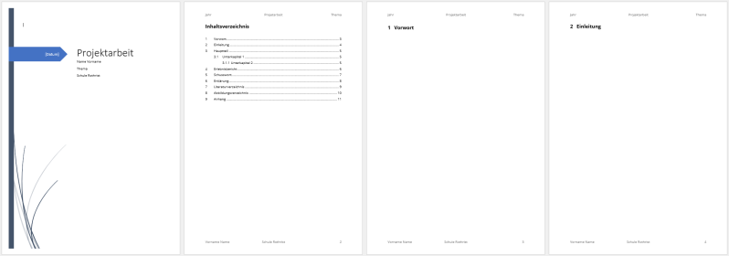 - Begriffe «Vorwort» bis «Anhang» erhalten die Formatvorlage «Überschrift 1»