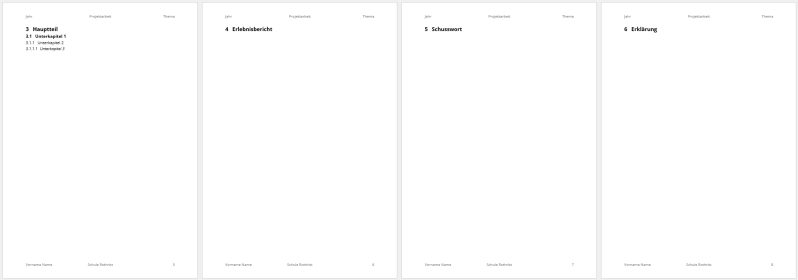 - Schreibe die folgende inhaltliche Struktur durch «Enter» abgetrennt auf die erste Seite: