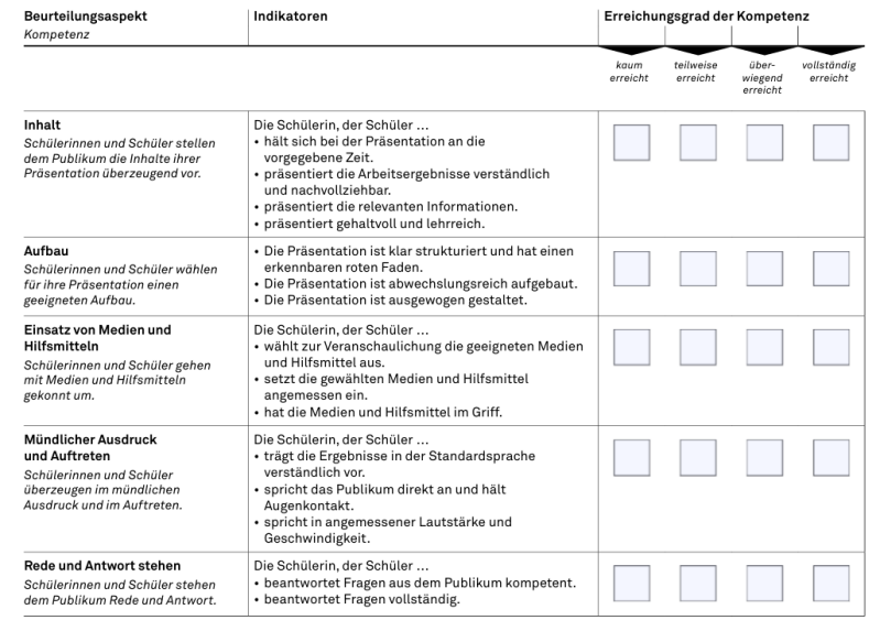 Mach dir während der Präsentation auf einem Blatt Papier Notizen zu folgenden Punkten zu: